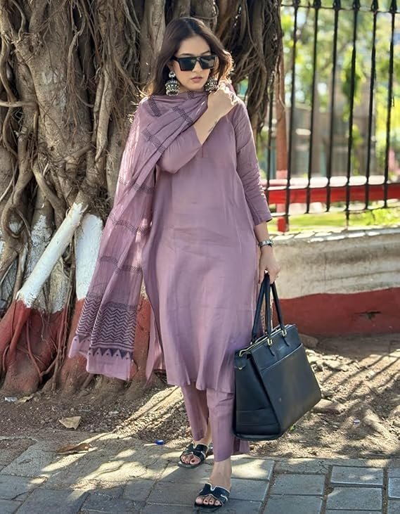Women’s Rayon Blend Straight Solid Kurta with Pant & Dupatta